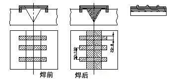 此種焊接方法主要用于工作應力較大,工件相對較厚的焊縫,如大型機器的底座等工件。鉚釘可用碳鋼承擔,焊鉚釘時(shí)可用J507焊條焊接,主焊縫仍舊用鎳基182焊條。焊接時(shí)先將坡口內焊滿(mǎn),最后焊鉚釘,使鉚釘和坡口內焊縫形成一個(gè)整體焊縫。